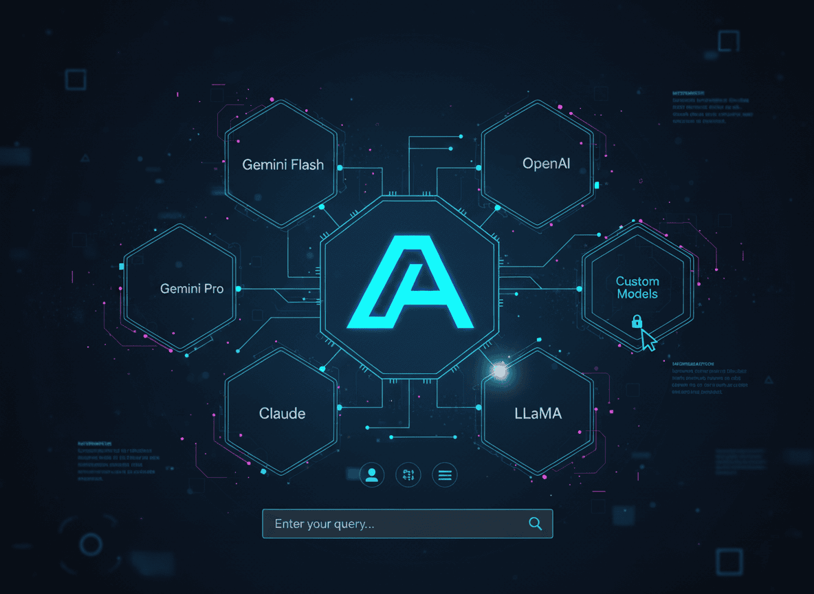built for information retrieval could offer a highly sophisticated and customizable experience by integrating a diverse ecosystem of Large Language Models (LLMs). This kind of system would not rely on a single, monolithic model but instead function as an orchestrator, allowing users to choose the "brain" for their search queries from a selection that includes most updated and cutting-edge models like Gemini Flash and Gemini Pro, as well as those from other providers like OpenAI, Claude, and Llama.