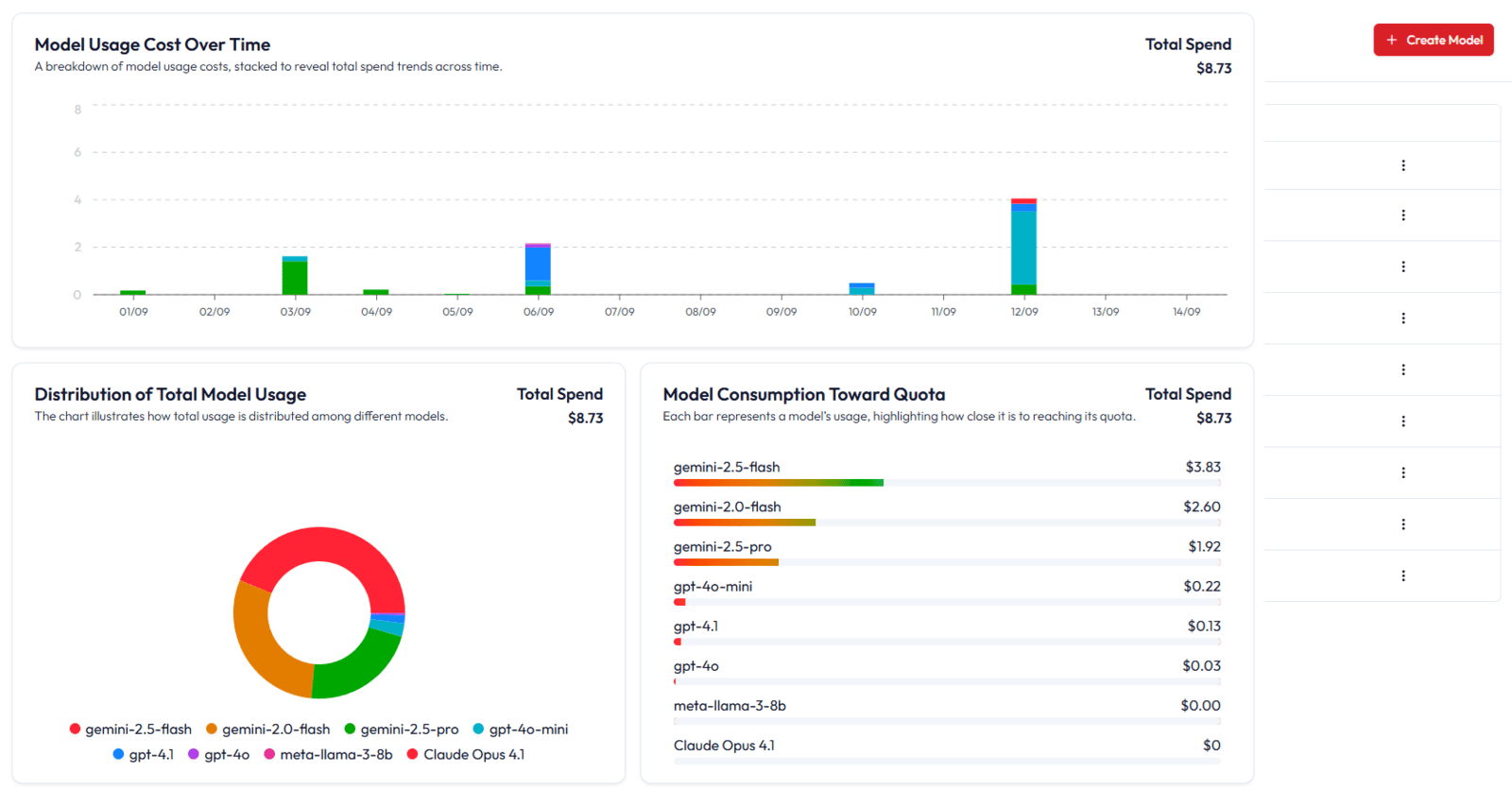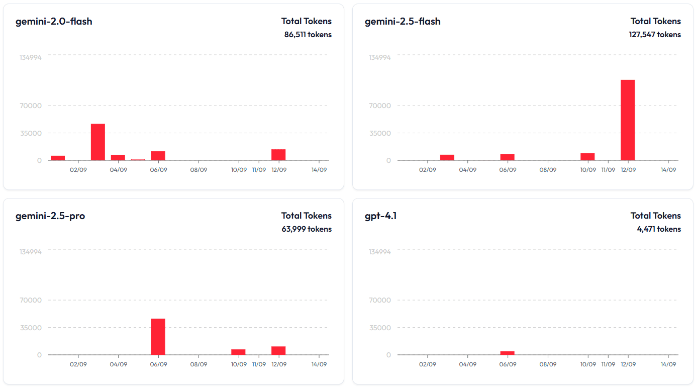 Comprehensive Usage Analytics: Gain granular insights into resource consumption, performance metrics, and cost allocation, with detailed breakdowns of usage per LLM model to optimize your expenditures and strategic planning.