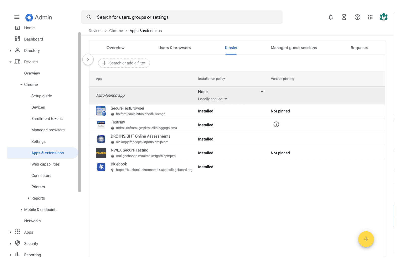 Enable standardized testing on Chromebooks, prohibit student devices from visiting external pages while they’re taking quizzes, and let students quickly access Chrome during library and lab time—without needing to sign in.