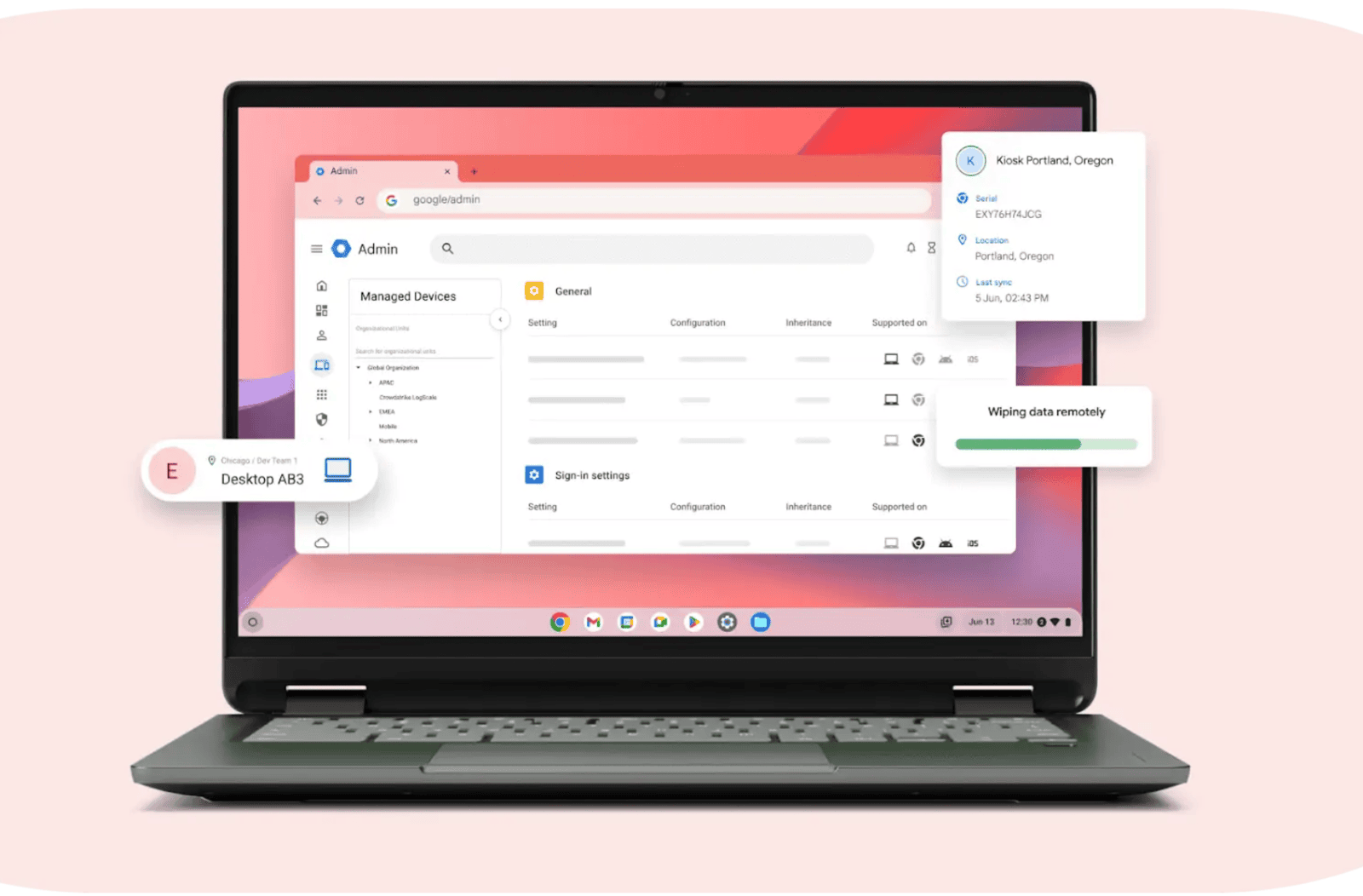 Manage your ChromeOS devices, apps, extensions, and Google Workspace all from one place.