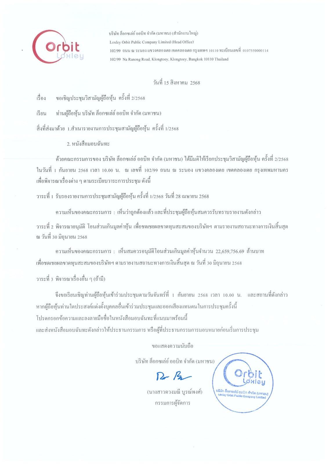 ขอเชิญประชุมวิสามัญผู้ถือหุ้น ครั้งที่ 2/2568