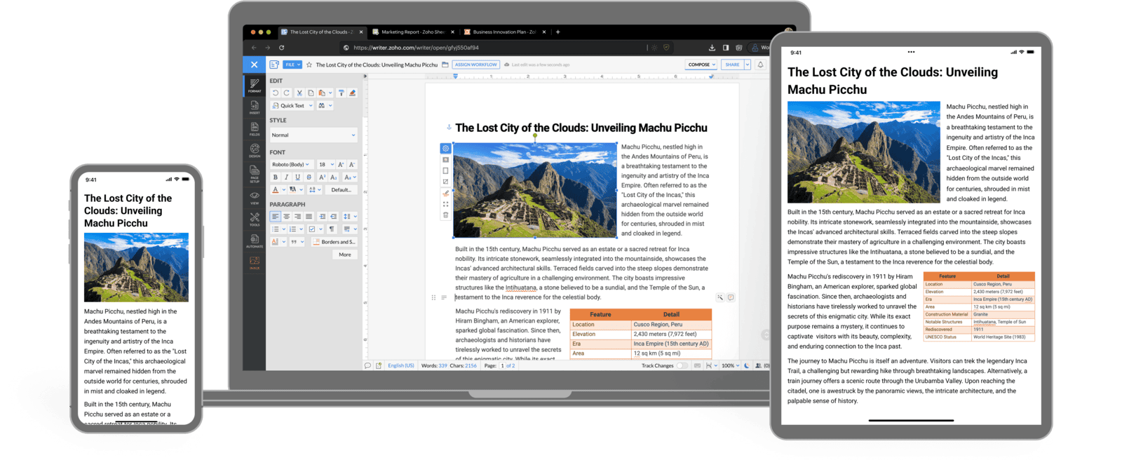 download Zoho Writer, Zoho Sheet and Zoho Show on your mobile devices to edit your files on the go. Available on both Android Playstore and Apple Appstore.